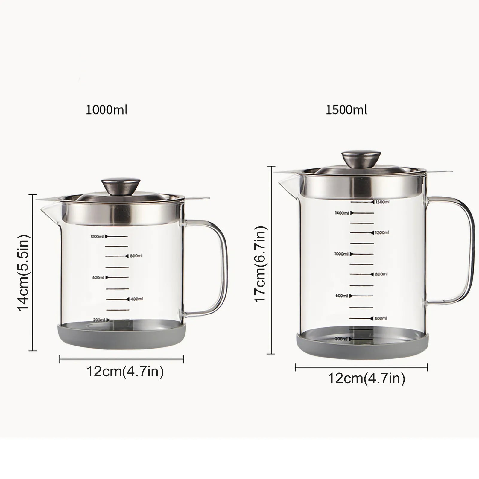 • Heat-resistant Borosilicate Glass: Crafted from high-quality borosilicate glass that withstands high temperatures without cracking or breaking. Safely store hot oil without compromising its integrity.