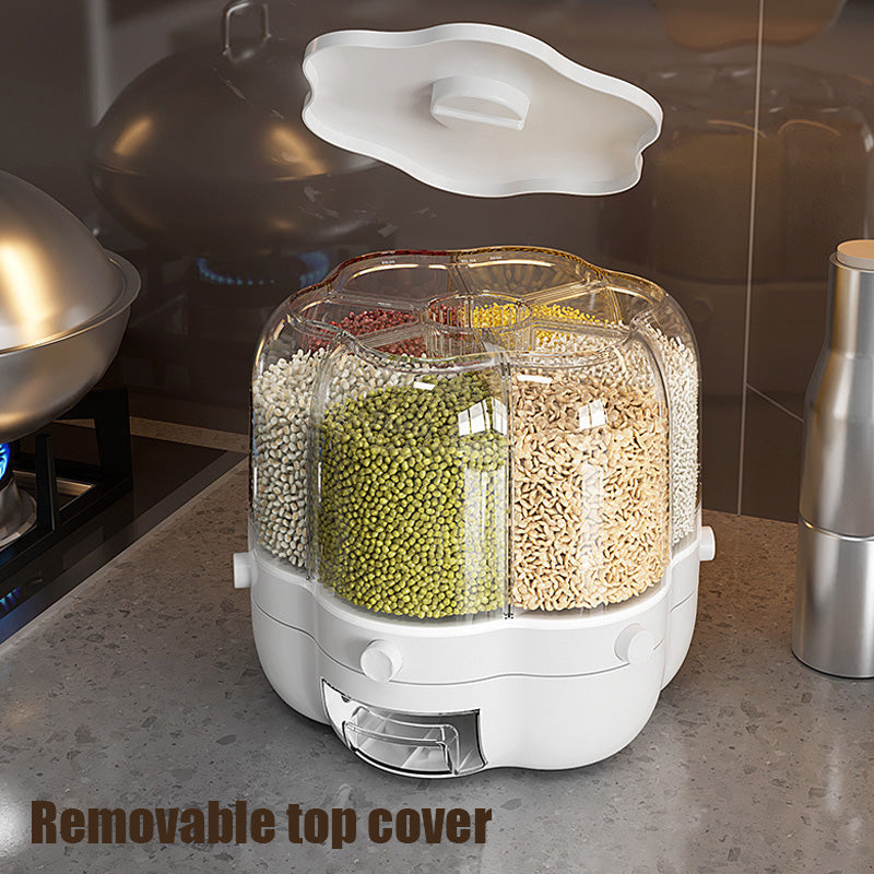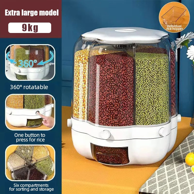 1.360 Degree Rotating Rice Bucket Household Insect-Proof Moisture-Proof Sealed Bucket Cereal Storage Jar Separated Rice Cylinder Rice Box Grid! This innovative rice bucket is perfect for every household that needs a convenient, reliable and efficient way to store grains. With a moisture-proof and insect-proof design, you can be rest assured that your grains will stay fresh for longer periods.