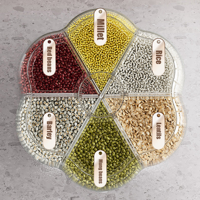 2.Made of high-quality PP material, this rice bucket is safe for storing food and is durable enough to withstand wear and tear. Its unique 360-degree rotating design makes it easy to access the different compartments of the bucket, allowing you to easily sort and organize your grains. The bucket comes with a sealed lid, ensuring that air does not penetrate and cause spoilage.