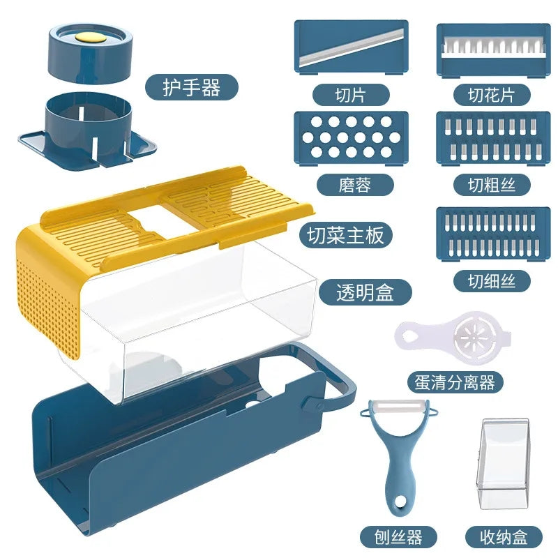 4.The vegetable slicer combines 5 blades to prepare delicious meals for everyone's taste. Slicer/shredder/ grater, just choose different blades to cut potatoes, carrots, lemons, onions, ginger, cheese