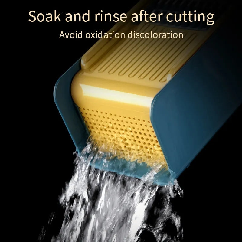 1.The versatile mandoline slicer combines 5 interchangeable blades: slicer, waffle cutter, chopper for thin and thick strips, julienne and grinder, ideal for hard and soft vegetables and Fruits such as carrots, potatoes, apples, lemons, onions, ginger, cheese, cucumbers, chips, salads
