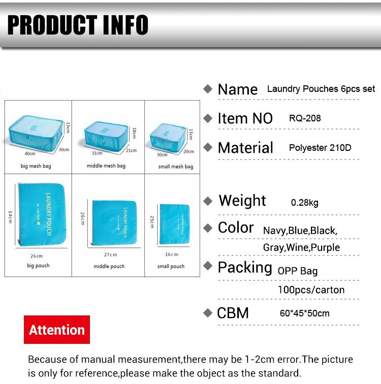 Luggage organizer sets can speed up your packing process and sort your cargo into different bags. Allows you to store easily and makes it easy to pack and unpack.