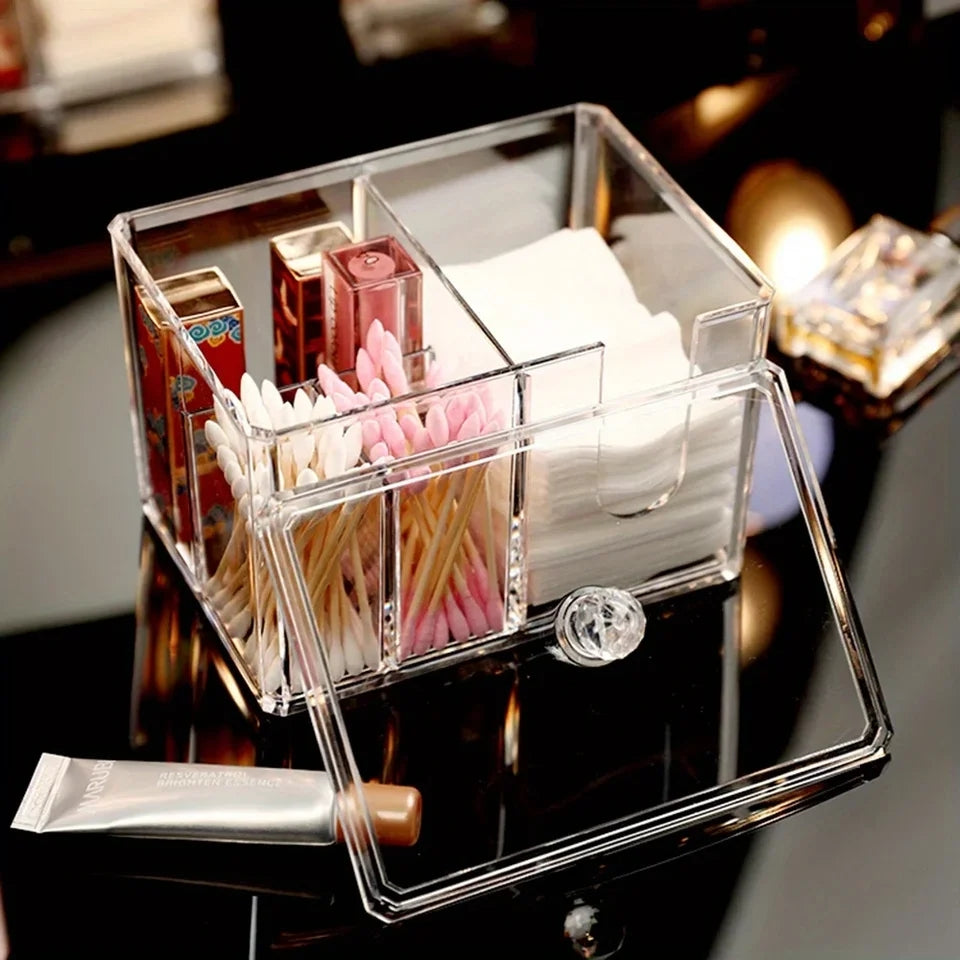 Cosmetic storage with 4 compartments keeps your makeup tools neat and in order, like cotton pads, swabs, balls, q-tips,lipsticks etc. And you will find them easily.