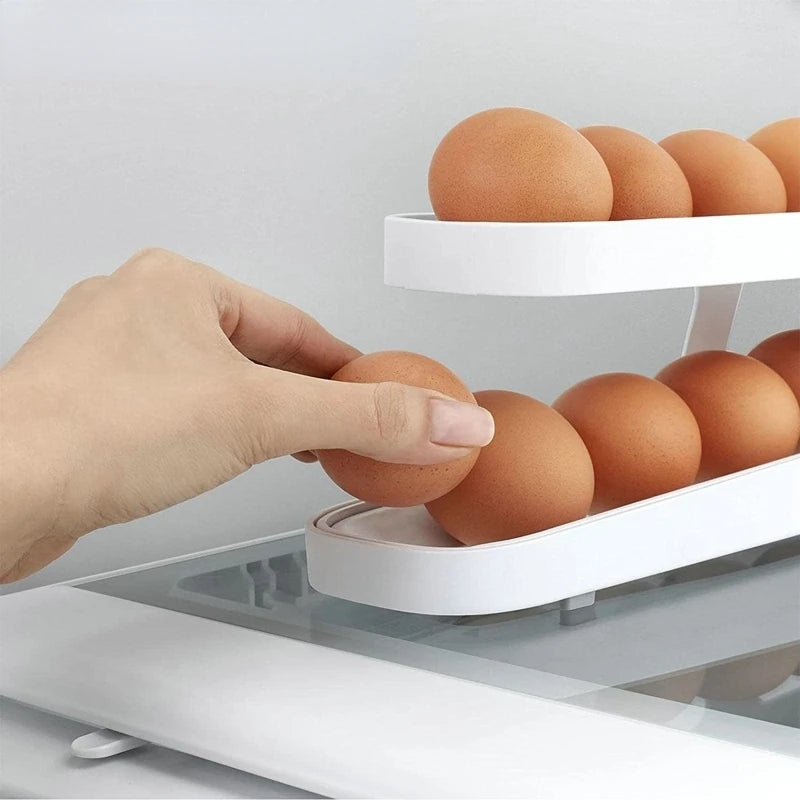 Features:Kitchen Automatic Scrolling Egg Rack Holder Storage Box Container Organizer Rolldown Refrigerator