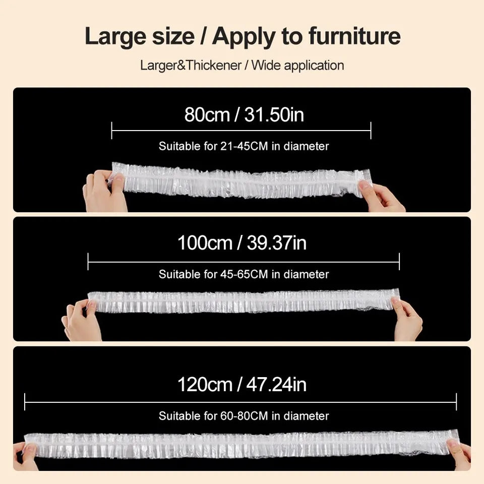 *1. Bigger and thicker: The upgraded cover is bigger and thicker. It comes with three sizes of fresh-keeping covers: 80cm, 100cm and 120cm, which can be adjusted to cover different sizes of appliances, household, dishes and basins.