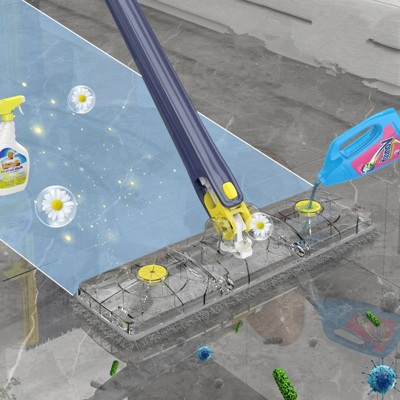 [360° Rotation and Efficient Cleaning] The cleaning mop adopts a flat design, and the connection between the mop head and the handle can be rotated 360° to clean various dead corners and hard-to-reach places, and easily solve stubborn problems. The wiper strip on the mop head can also be cleaned floor or wall glass with water stains.