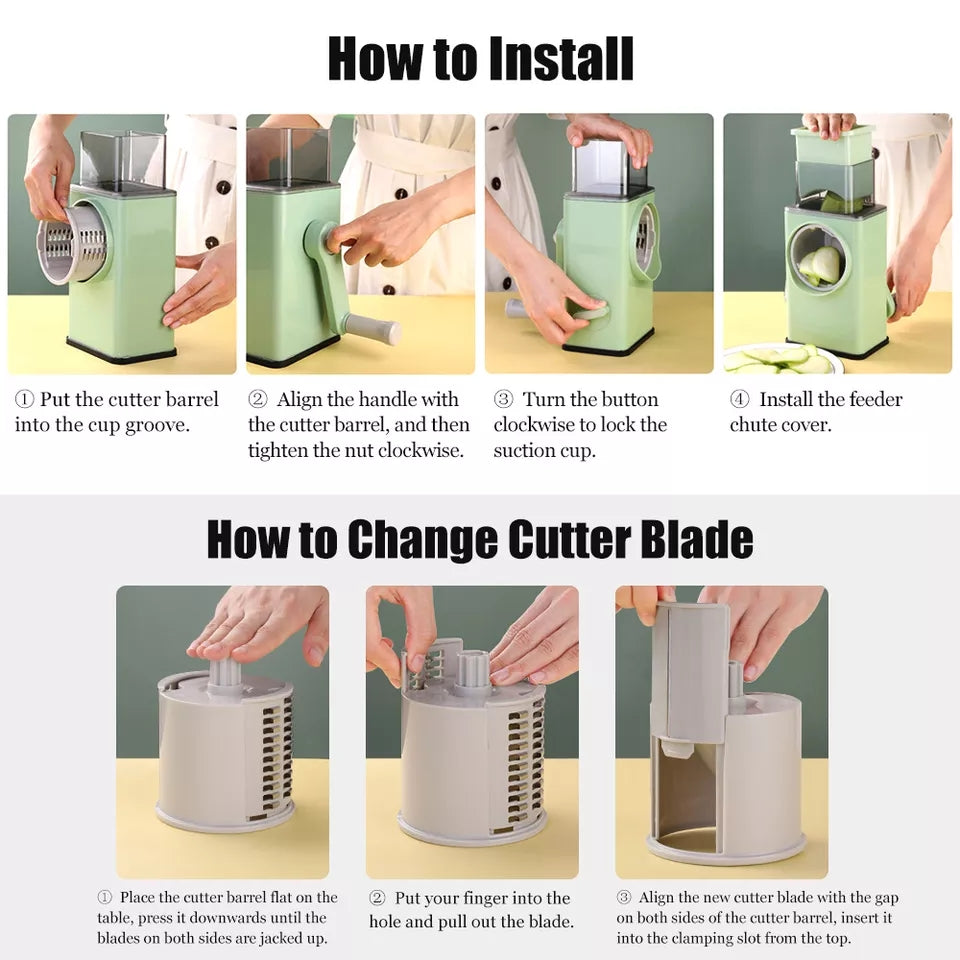 [3-in-1 Multifunctional Vegetable Cutter] Equipped with 1 slicing cutter blade, 1 shredding blade, and 1 grinding blade, satisfying your various cooking needs,
