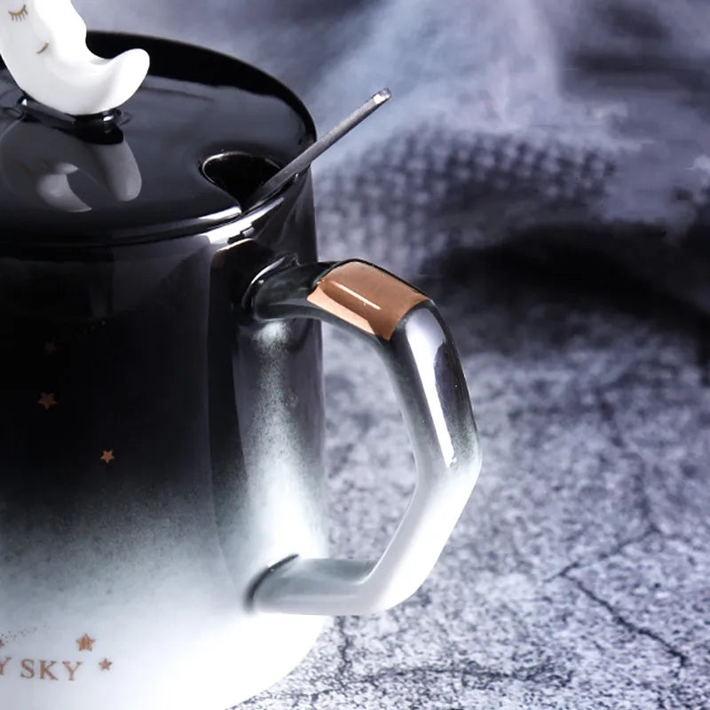 Features: 1. Creative design: adorable cartoon pattern printed on the mug, comes with a cute and creative cup lip.