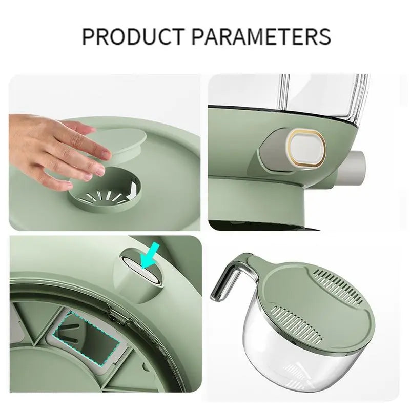 The top cover of the Grain Dispenser is detachable for easy storage of miscellaneous grains. The airtight lid ensures your food stays dry and fresh, it keeps your kitchen organized.