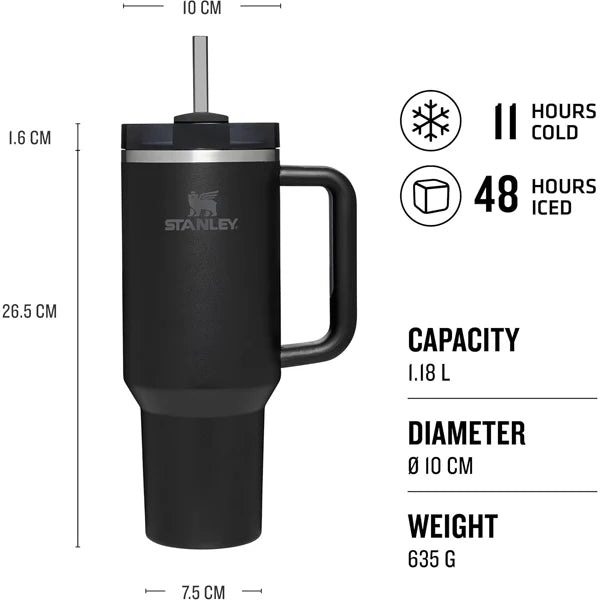 The time is now for taking care of you whether your go to method of self care is meditation, yoga, frequenting sound baths or time with your closest friends. The Stanley 40 oz Adventure Quencher will be by your side should you need an emotional support water bottle, or simply want to meet your daily hydration goal.Take it with you to your favorite studio workout, or let it be your desk companion, where it will keep your drink ice cold for hours. The rotating lid features three positions: a straw opening, an opening for sipping, and a full cover top to help prevent spills.