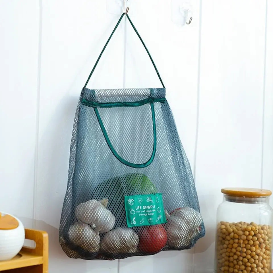 Moistureproof Mesh Bag Ventilative Polyester Hanging Large Capacity Wall-mountable Fruit Vegetable Storage Pouch for Daily Life