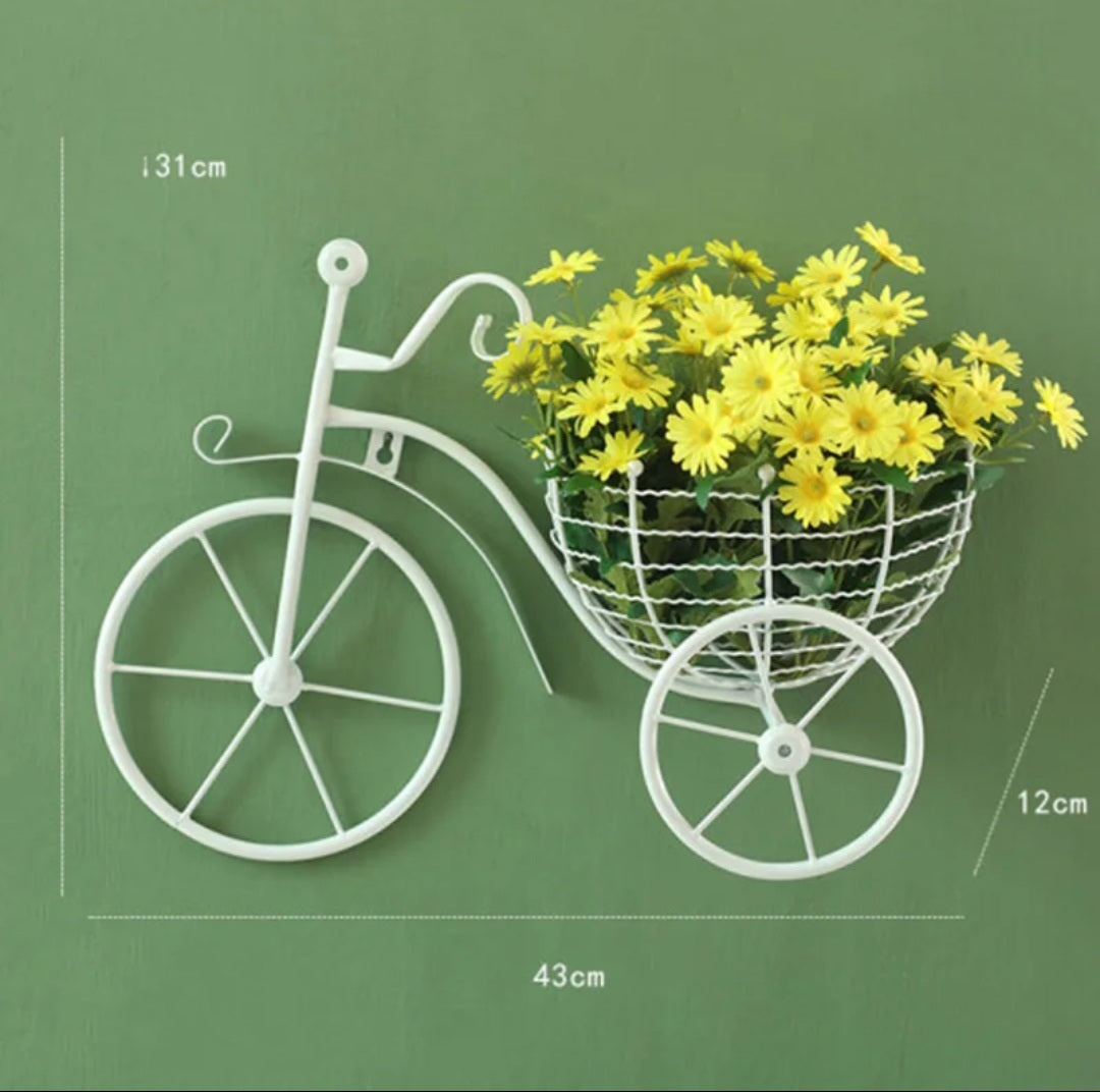 This product is a flower basket of three-dimensional bicycle made of iron, which is used to put home plants and flowers in a retro pastoral style.