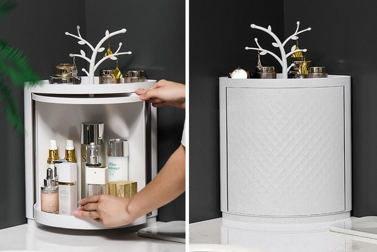 3. 360°rotating dustproof: The corner storage rack can be rotated 360°, which is convenient to use and save space. The front of the shelf is covered to effectively prevent dust and keep the stored items clean. It is