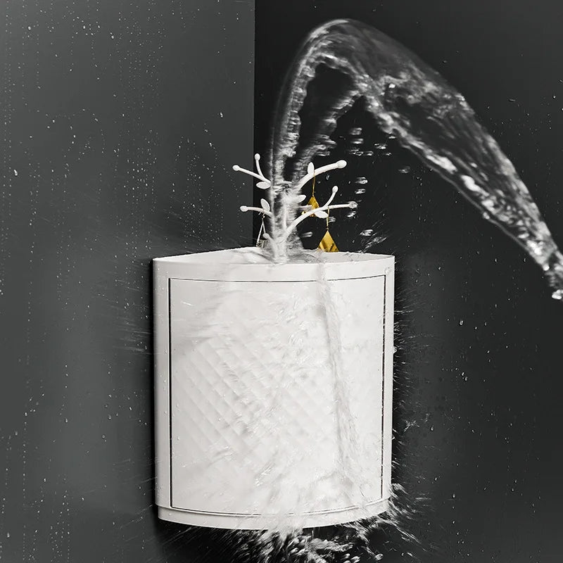 2. Corner triangle storage rack: The triangle storage rack adopts a fan-shaped design, and a revolving door design is added to the outside of the storage cabinet to protect personal privacy and avoid restriction. It can also be used as a storage point for cosmetics and kitchen flavors.